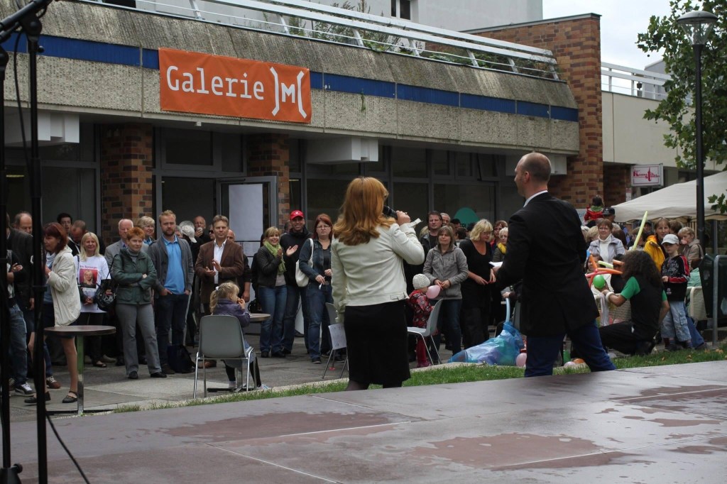 Zu den Urängsten der Kulturakteure gehört, sie könnten eingespart, weggespart werden, einfach dem alten Vorrang „Brot zuerst“, also dem wirtschaftlichen Aspekten unterlegen sein, in der Menschen erst einmal einen vollen Bauch brauchen, um Kultur zu genießen – oder die Kommune alle Pflichtleistungen erfüllt haben, um Kultur zu bezahlen. Und in der Tat: als ich hier in Marzahn als Kulturstadträtin gestartet bin, stand auch sofort der Abriss der Galerie M auf der Tagesordnung. Die degewo hatte dies schon angekündigt und in wenigen Tagen musste ein Alternativstandort gefunden werden. Marzahner Promenade 46, ein Laden, war die schnell von der degewo ausgemachte Lösung.
