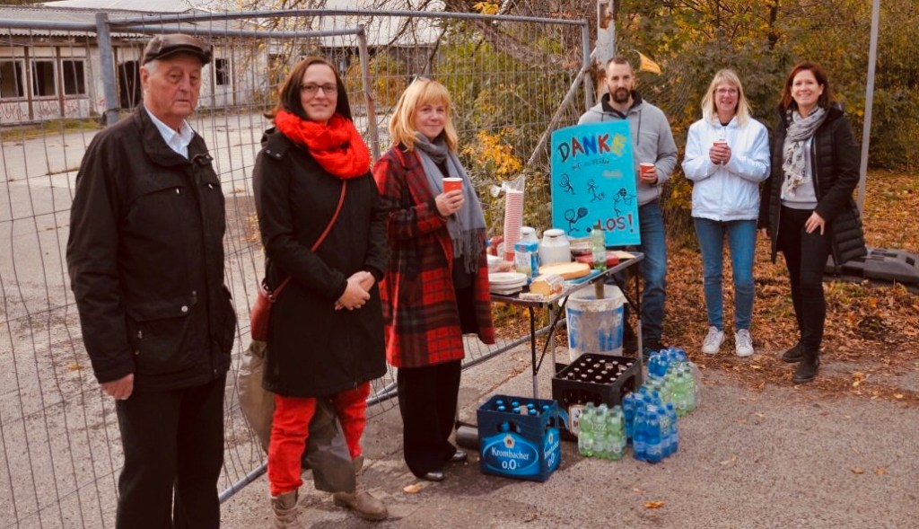 Zum Baustart „Abriss der Alten Werkhallen #Bergedorfer Straße“ am Montag, dem 25. Oktober, war die ausgewählte Firma SBucher aus Sachsen https://sbucher.de angereist mit den ersten Fahrzeugen. Nach der Klärung der Finanzierung, der erfolgten Ausschreibung, der Auswahl des Unternehmens war heute „Begrüßung der Arbeiter in Berlin“ mit Brause und Quarkkuchen angesagt. Hier soll auf der Fläche ab März 2022 die neue Turnhalle für die Ulmengrundschule von der Senatsverwaltung errichtet werden. Gemeinsam mit Herrn Schöneberg von der Elternvertretung der Ulmenschule, deren Idee der leckere Empfang war, haben wir gemeinsam diesen Start der Abrissarbeiten vor Ort und vor der Baustelle kurz gemeinsam zelebriert und festgehalten. Ein guter Tag, ein Ergebnis vieler Engagierter, an der Seite der Eltern heute u.a. politische Vertreter aus dem AGH Katharina Günther-Wünsch und Stefanie Wagner-Boysen und Eberhard Roloff aus der BVV. Dank geht an meine Bauleiterin, die hier mit klaren Ansagen, Vorsicht und Umsicht alles im Blick hat. Auch weiterhin werden Eltern und Politische Vertreter das Vorhaben begleiten.