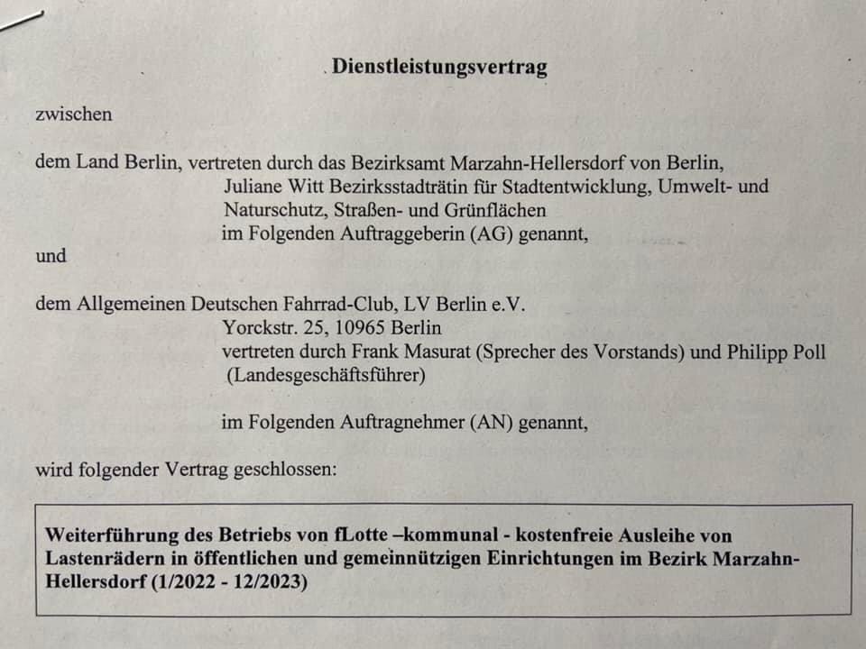 Gute Nachrichten: Das Projekt Flotte BERLIN,der Verleih von Lastenrädern an verschiedenen Stationen im Bezirk, von der FreiwilligenAgentur Marzahn-Hellersdorf bis zum SOS-Familienzentrum Berlin, von der Villa Pelikan bis Jfe Uno, wird auch für die nächsten beiden Jahren weitergeführt.
