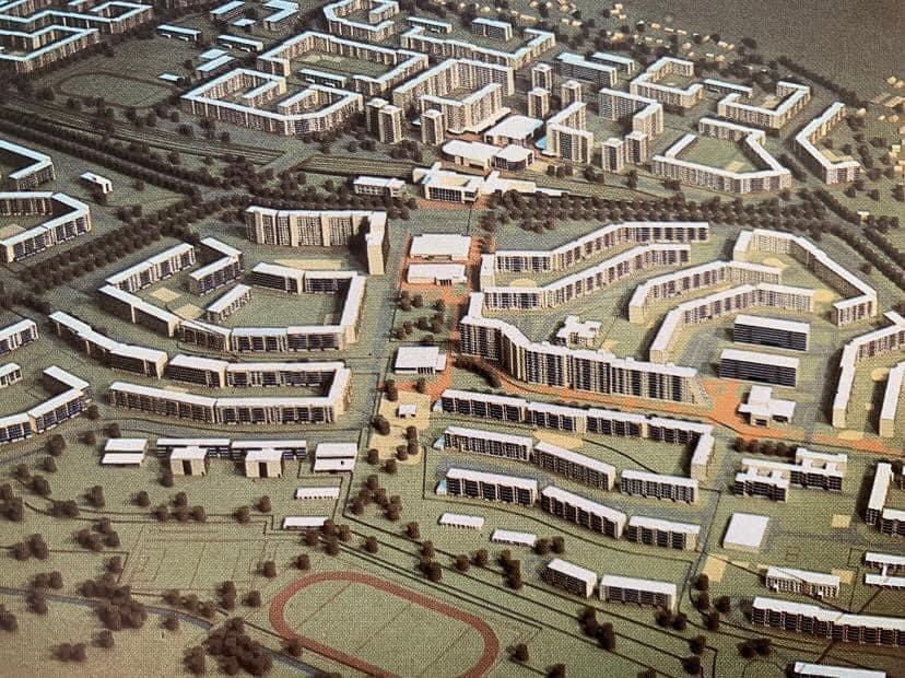 Unsere Dienstberatung hatte heute sehr gewonnen, nachdem die alten Planungen der DDR für Hellersdorf gefunden und präsentiert wurden. Die jungen Planer hatten gerade vom Reiz der Platte, der Ostmoderne gesprochen und welche Nachbarschaftstreffpunkte urbane Zentren sind. Für die älteren Kollegen war es eher spannend, nochmal die Pläne mit der vollständigen Bebauung des Cecilienplatzes zu sehen. Die Namen zeigen, wo die Bauarbeiter aus welchen Bezirken “beim Aufbau“ dabei waren.
