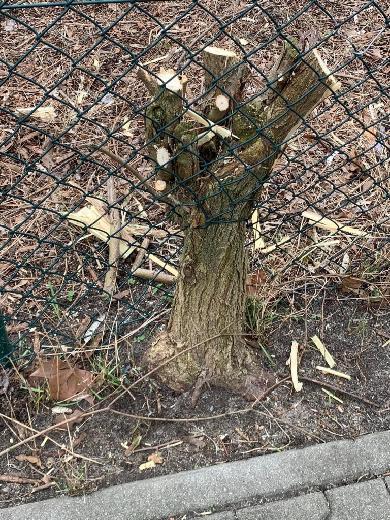 🟨Derzeit werde ich auf viele Schnittmassnahmen an Gehölzen hingewiesen. Die Aufmerksamkeit vieler Nachbarn im Pandemie-Modus ist groß. Letzten Freitag Abend hatte ich den Hinweis erhalten, nach möglichen Fällungen im Hof der Luzinstrasse, der ehemaligen Kita-Fläche zu schauen. Das habe ich am letzten Sonntag auch gleich getan und mich auch vor Ort gleich austauscht und einige Fragen beantwortet.
