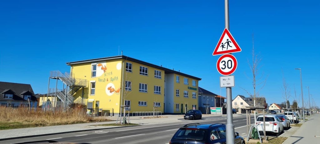 Mit der Fertigstellung der Pilgramer Straße in Mahlsdorf wurde diese gern als Schnellstraße. Sehr zum Ärger der Eltern und Unmut der Kita Thea und Doro. Auf gemeinsame Initiative der BVV hin ist nun entsprechend Tempo 30 angeordnet. Es wird jetzt beobachtet, ob dies spürbare Entlastung bringt. ( Eigentlich ist die farbenfrohe Kindertagesstätte Warnschild genug, dass hier Kids sind und Kitagruppen über die Straße gehen können… und man den Fuß vom Gas nimmt… )