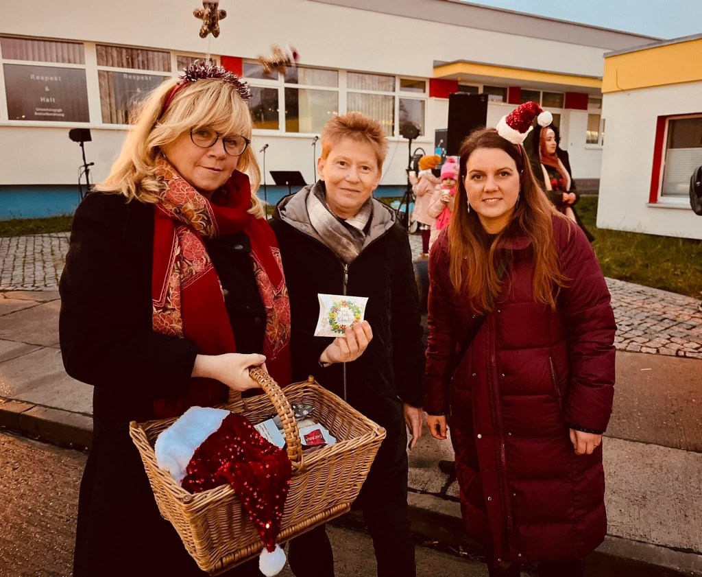 Wie immer wurden die Wunschzettel ernst genommen, es wurde gekauft, eingepackt, transportiert und dann warteten alle ungeduldig auf die Bescherung. Besonders schön war dieses Jahr der fantastische Auftritt der “Marzahner Promenadenmischung” mit wunderschönen Weihnachtsliedern. Als Zugabe haben dann alle zusammen Felice Navidad dreimal gesungen, auf deutsch, spanisch “und jetzt nochmal englisch”. Herausragend wieder der Beitrag der beiden Partner am Platz: Schwester Margareta vom Don Bosco Zentrum und ihr Team hatten mit heißem Kakao und Feuerschale weihnachtliche Stimmung organisiert. Und künstlerische Meisterklasse war der Auftritt der Artistin Andrea, die hier vom Zirkus Cabuwazi alle mit ihrer Feuer-Show begeisterte. Eine gute Gelegenheit auch für Petra Pau, die hier persönlich mit viel Geduld alle Wünsche der Kinder erfüllte und auch gleich den Trägern vor Ort ganz herzlich Danke sagen konnte. Es war mir eine Ehre, diese schöne und gut besuchte Aktion mit gemeinsamen Gesang und Freude moderieren zu dürfen! ♥️