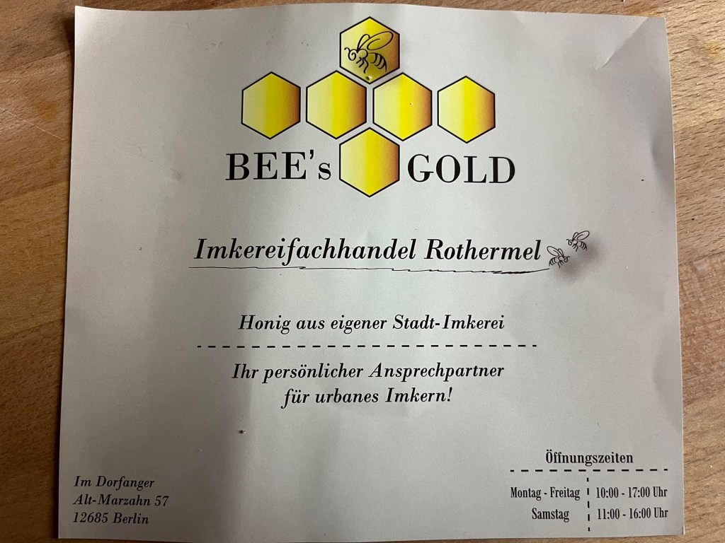 🟧🐝Gottlieb Rothermel und seine Frau sind ein tolles Team im neuen Laden für Imkereibedarf in Marzahn, direkt im Herzen vom alten Dorf gegenüber dem Museum Haus 2, nahe der Mühle. Es ist eine Freude, im gut sortierten Laden des jungen Unternehmers zu schauen, sich beraten zu lassen und zu merken, mit wie viel Liebe und Blick für Details hier alles entstanden ist. Natürlich passt hier jede Ecke zu Natur und zum Thema Bienen, der passionierte Imker weiß das umweltbewusste Publikum ebenso abzusprechen wie Liebhaber kleiner Mitbringsel aus dem Bezirk. Die Honig-Gläser werden wieder als Pfandgläser zurück genommen, es gibt auch Kaffee für Besucher und kundige Informationen zur Imkerei! Ab Mai soll es eine große Schaukiste an der Marzahner Mühle geben, um Interessierten Mut zu machen für die Stadtimkerei!