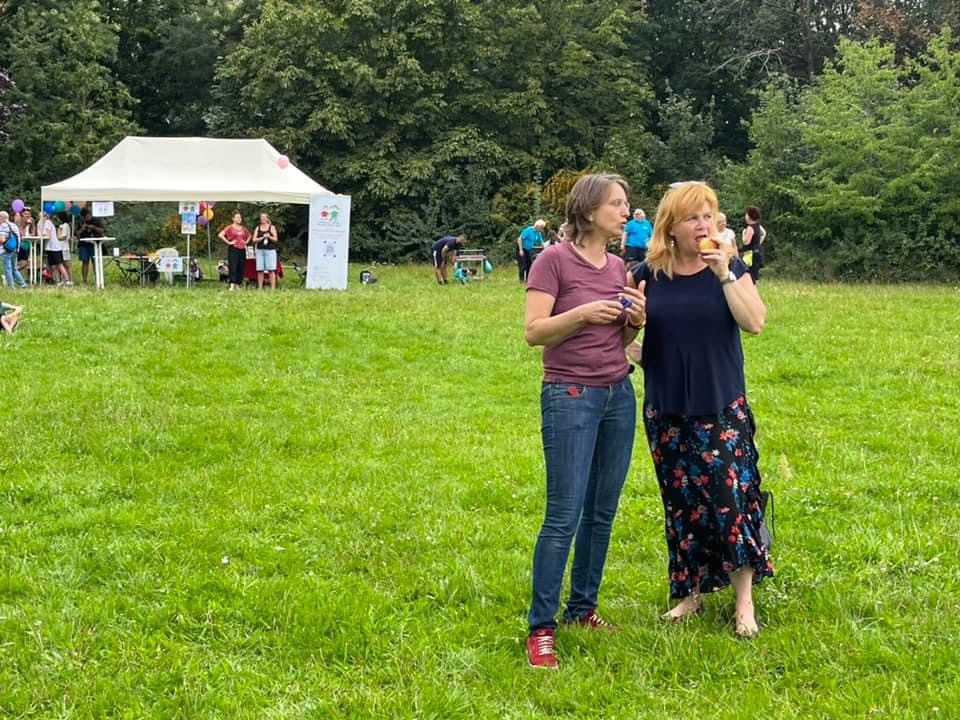 Heute war Feriensommer-Abschlussfest im Bürgerpark Marzahn. Bei einer kleinen Olympiade konnten sich Kinder in verschiedenen Sportarten von Tischtennis über Badminton bis Cricket ausprobieren. Für jede absolvierte Bewegungsstation gab es einen Stempel in die Stempelkarte. Wer mindestens sechs Teilnahmen nachweisen konnte, durfte sich einen Preis aussuchen. Zwischendurch sorgte eine Regenhusche für eine kleine Abkühlung, was die gute Stimmung auf der grünen Wiese zwischen Ludwig-Renn- und Lea-Grundig-Straße aber nicht im Geringsten trübte.
