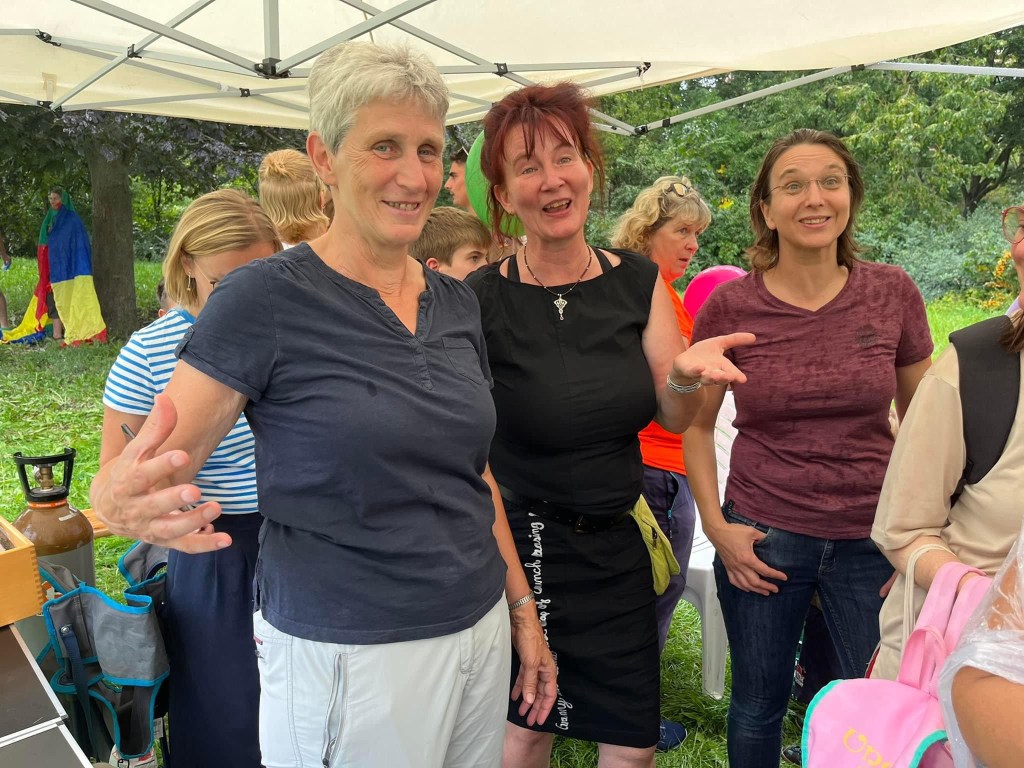 Für Gabriele Fiedler, die im Bezirksamt für Jugendförderung zuständig ist, wird dieser Feriensommer der letzte gewesen sein – zumindest als Mitarbeiterin der Verwaltung. Sie geht bald schon in den wohlverdienten Ruhestand. Mit stürmischem Applaus und „Gabi, Gabi“-Rufen zollten die Mitstreiterinnen vom Bündnis für Kinder ihrer Kollegin Respekt. Juliane Witt überreichte einen Strauß Blumen und würdigte Gabi Fiedlers herausragendes Engagement für Kinder und Jugendliche in den vergangenen Jahrzehnten.