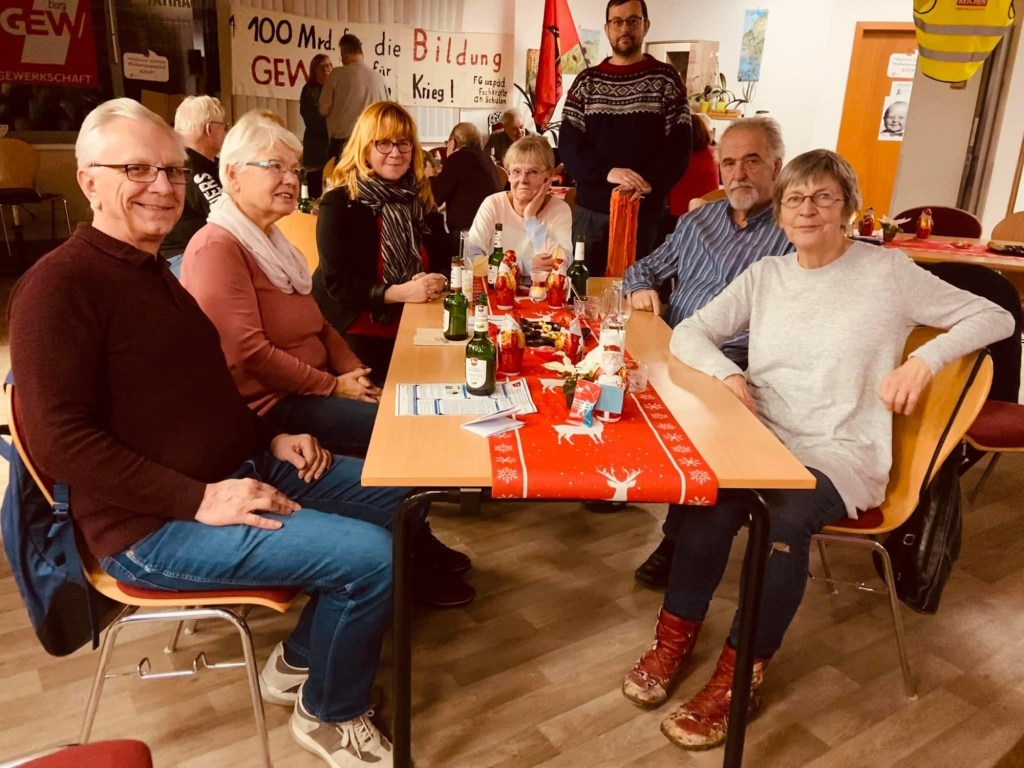 Hier am Tisch der Marzahner rund um Ute Thomas sind wir gerade beim Singen kämpferischer Lieder, und ehrlich: alle sind aktuell.