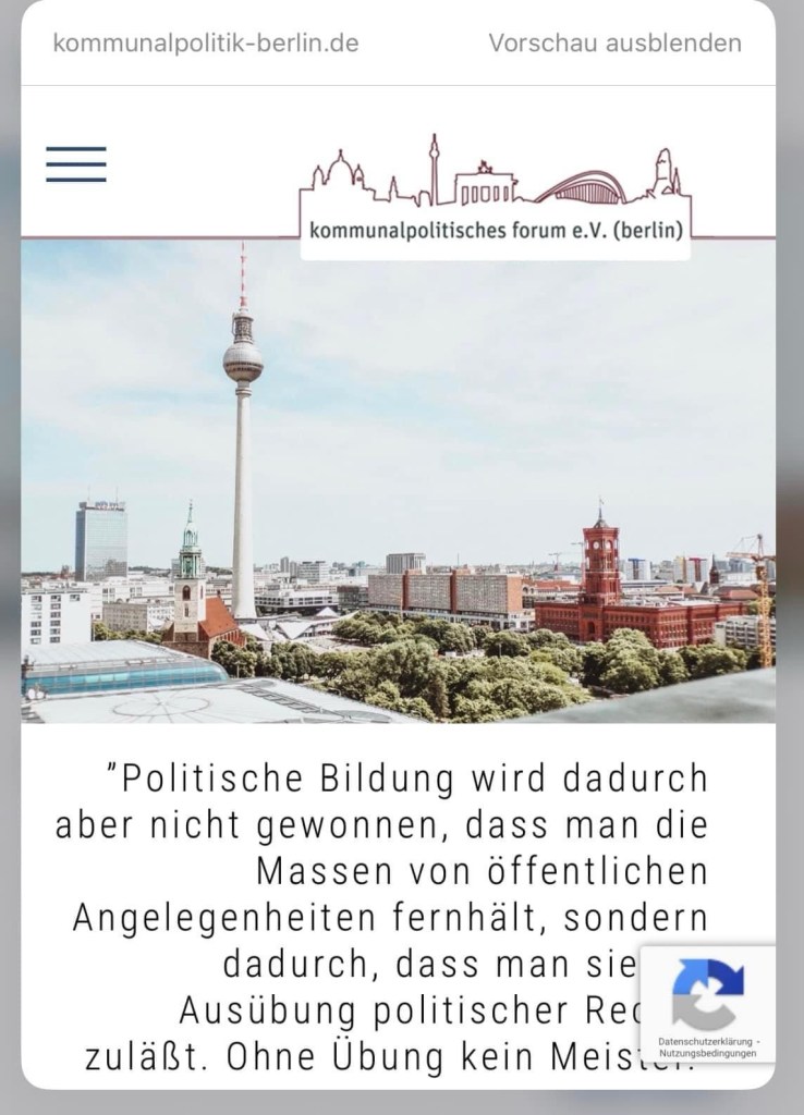🟧 Der Verein Kommunalpolitisches forum e.V. – berlin unter dem Vorsitz vom langjährig erfahrenem kommunalpolitischen Kämpfer Michael Grunst und unserer Haushaltsexpertin der Linksfraktion Berlin, Frau Dr. Manuela Schmidt, ist fest an der Seite der kommunalpolitische Aktiven in den Bezirken. Ist so, bleibt so, muss aber auch untersetzt werden.