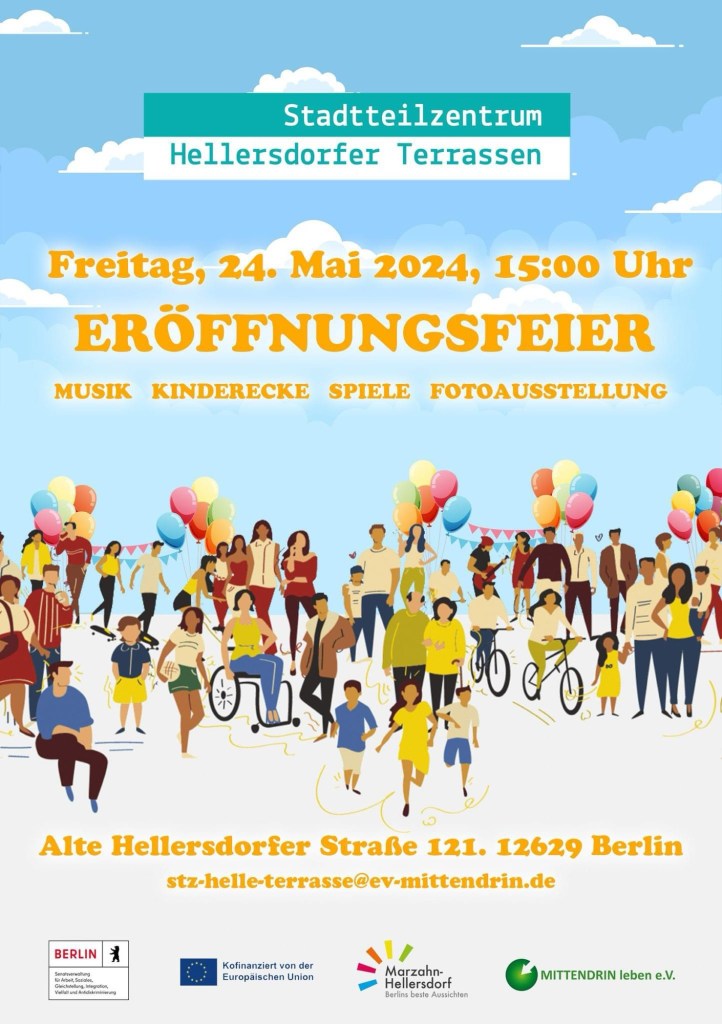 Wir laden Sie herzlich zu unserer Eröffnungsfeier des Stadtteilzentrums Hellersdorfer Terrassen am 24. Mai ab 15 Uhr ein!