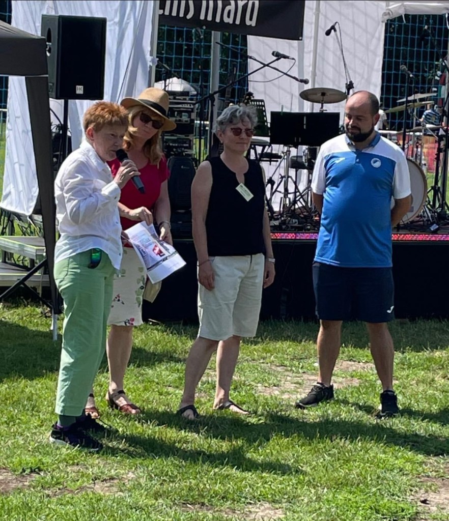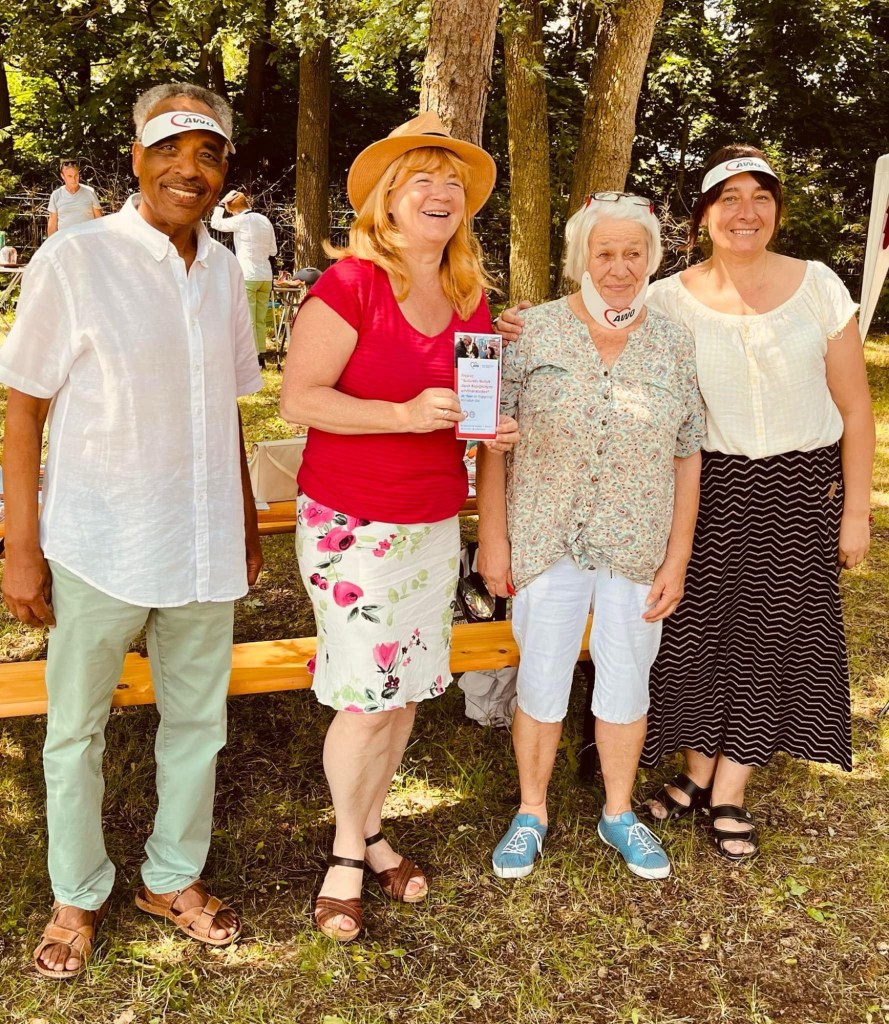 Beim einer Torwand konnten Kids und Erwachsene ihre Treffsicherheit testen. Im Schatten hatten die Vereine ihre Stände aufgebaut. Gern habe ich den beiden Vereinen vor Ort, dem Bürgerverein mit dem Bürgerstübchen und dem Team vom Stadtteilzentrum der AWO ganz herzlich gedankt für die vielen Angebote vor Ort. Beide Nachbarschaftsorte im Mahlsdorfer Süden werden vom Sozialamt auch finanziell unterstützt. Mit dem Team vom Stadtteilzentrum konnte ich auch nochmal Feedback zum gestrigen Tag der Stadtteilzentren einholen, Danke Dr. Sufian Weise und Natalija Sudnikovic. Zur Eröffnung hatte Petra Pau als Mitglied des Vereins der Bundestagsfraktion des Linken einen Scheck von 1000 Euro mitgebracht, gute Unterstützung für den Bürgerverein, das Fest. Das der Verein auch mit den Nachbarn wunderbare selbstgefertigte Keramik anbot, als Spende für die Projekte, ergab einen ebenso schönen Austausch wie der Plausch mit dem Verein im Kunsthaus Flora.