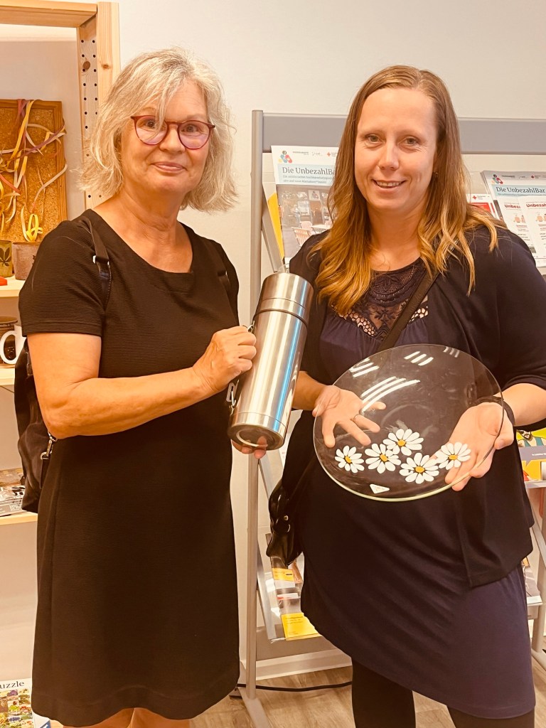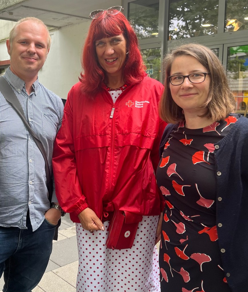 Seitens des Sozialamtes hatten wir uns mit den Nachbarschaftsmitteln FEIN eingesetzt, der vom DRK gestellte Antrag wurde beschieden und somit ist ein guter fachlicher Beratungspart gegeben. Mit Frau Monkorps und Frau Schlüssler vom Team Stadtteilarbeit / Haushalt im Sozialamt haben wir zwei Kisten Inventar mitgebracht, vom Kuchenteller bis zur Thermoskanne, gespendet von unseren Kollegen, aber auch viele weitere Gäste haben erste Spenden vorbei gebracht.