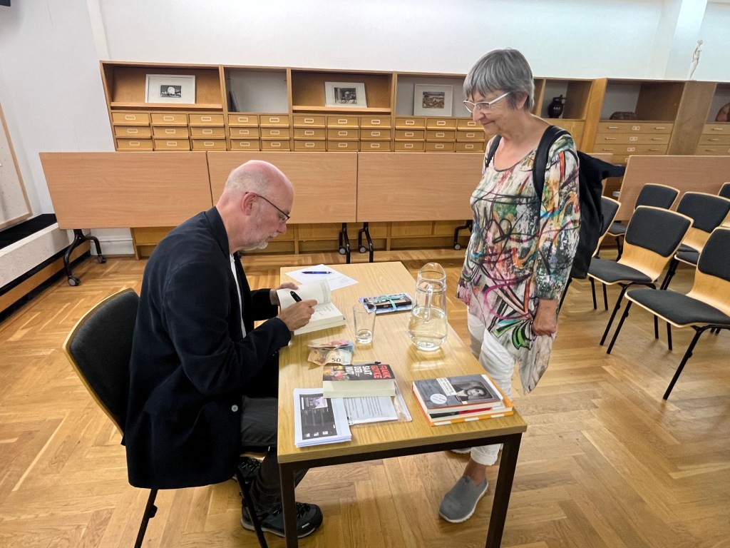 Der Stapel mitgebrachter Bücher war rasch alle, unsere Kulturliebhaberin und selbst früherer Ausschussvorsitzende Ute Thomas hatten dann auch das letzte Buch ergattert. Danach gab es eine gemeinsame Wanderung zum Parkfriedhof, die sehr bewegend war, nicht allein zum Tatort, sondern zu allen Gedenkorten. Danke für den informativen, überraschenden, bewegenden Abend!