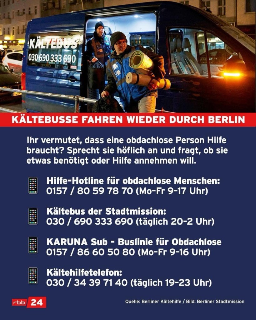 🟥 Seit Jahren gibt es in Berlin das besondere Angebot, um Menschen im Winter vor Erfrierung und Not zu schützen, die auf der Strasse leben.