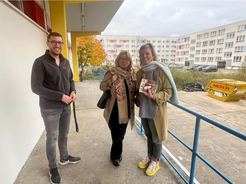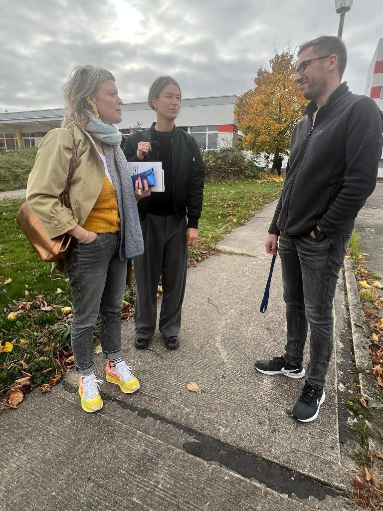 🟥 Mit einem gemeinsamen „Zuhör-Kaffee bei den Fachleuten“ sozialer Arbeit sind wir neulich am Otto-Rosenberg Platz in den Tag gestartet. Ich konnte mit meiner Brötchentüte Katalin Gennburg gleich an der Bahnhofstreppe von der S-Bahn abholen. Und damit der Abgeordneten das Thema „Hier muss ein Fahrstuhl hin“, was erst neulich durch eine Unterschriftenaktion bestärkt wurde, sehr „sichtbar“ nahe bringen.