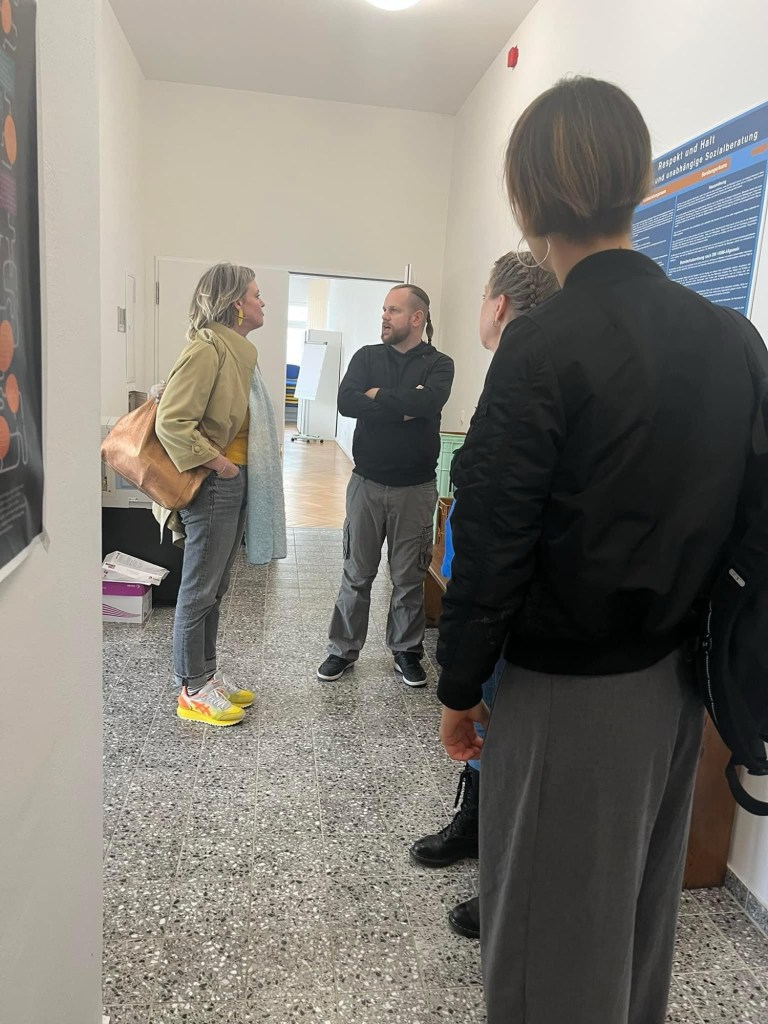 Im Don Bosci Zentrum bei Pater Simon Härting konnte der einfühlsame Leiter der Einrichtung sehr gut vermitteln, was diesen Ort auszeichnet, 24 Stunden immer offen für Menschen, die Hilfe brauchen, Abgebote zur Notübernachtung, warme Kleidung. Wie man in der Stadt Platz schaffen kann und muss für soziale Orte der Fürsorge, wie Umbau für soziale Orte gelingen kann, hat Katalin sehr interessiert, das Otto-Rosenberg-Haus mit Werkstätten für Jugendliche ohne Schulabschluss, die kleine Schule für jene, die in der Regelschule scheitern, unsere Wohnungslosenunterkünfte im Hintergrund, ein Ort, wo schwierige Aufgaben seit Jahren angegangen werden.