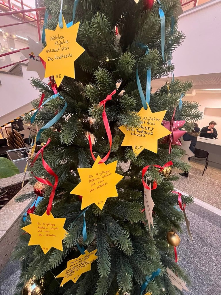 Viele Wunsch-Sterne, die durch Partner und Vereine aus unserem Bezirk von Familien in schwierigen Lebenslagen beschriftet wurden, sind liebevoll befestigt worden. Natürlich haben wir auch jeder gleich einen Wunsch „gepflückt“. Bis zum 7.12. sollen Objekte, unverpackt, wieder am jeweiligen Standort abgegeben werden. Durch die Aktion werden 316 Kinder beschenkt werden – neben vielen Weihnachtsaktionen eine besonders berührende Aktion und wir danken dem Team sehr herzlich!