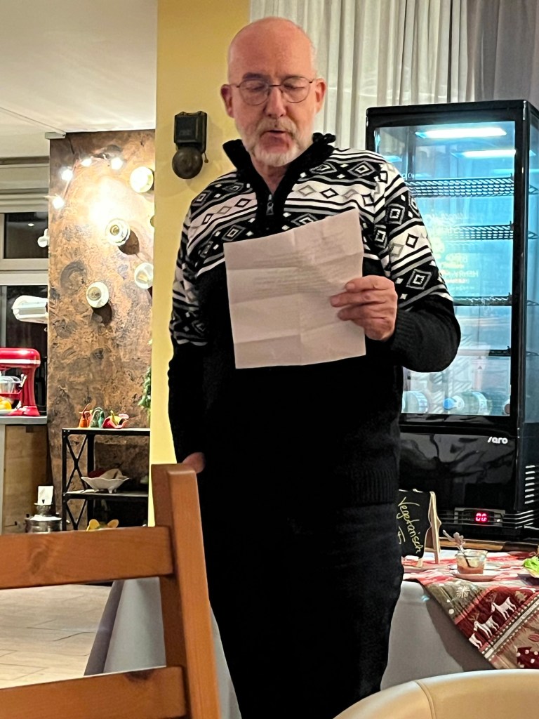 ❤️ Danke an Stefan Taube für die Orga und den feinen Zusammenhalt von alt und jung. Besonders gefreut habe ich mich für Dorle Zilch, die den Künstler eingeladen hatte. Im Anschluss gab es mehrere Gedichte, die einfacher Hasan vorgetragen wurden, dazu leckerste vegane Quiche!