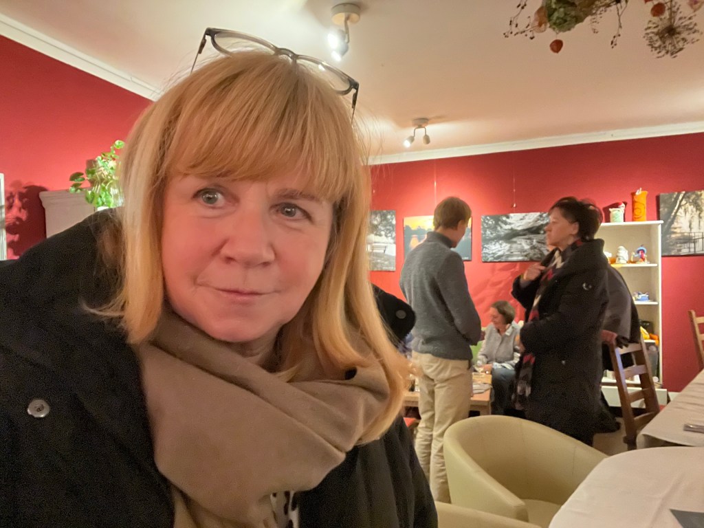 🟨 Danke: eine feine Stimmung im Café Café Kunst & Krümel, von Familie Thümmler inzwischen zu einem wunderbaren Kunst- und Kulturort entwickelt. An den Wänden sind gerade sehr schöne Fotoarbeiten zu sehen, dazu gibt es zauberhafte kleine Häuschen und als passende Geschenke Holzscheiben und Mosaike als Untersetzer. Absoluter Tipp für Weihnachtsgeschenke!!