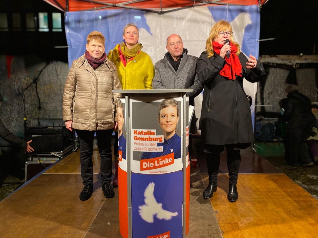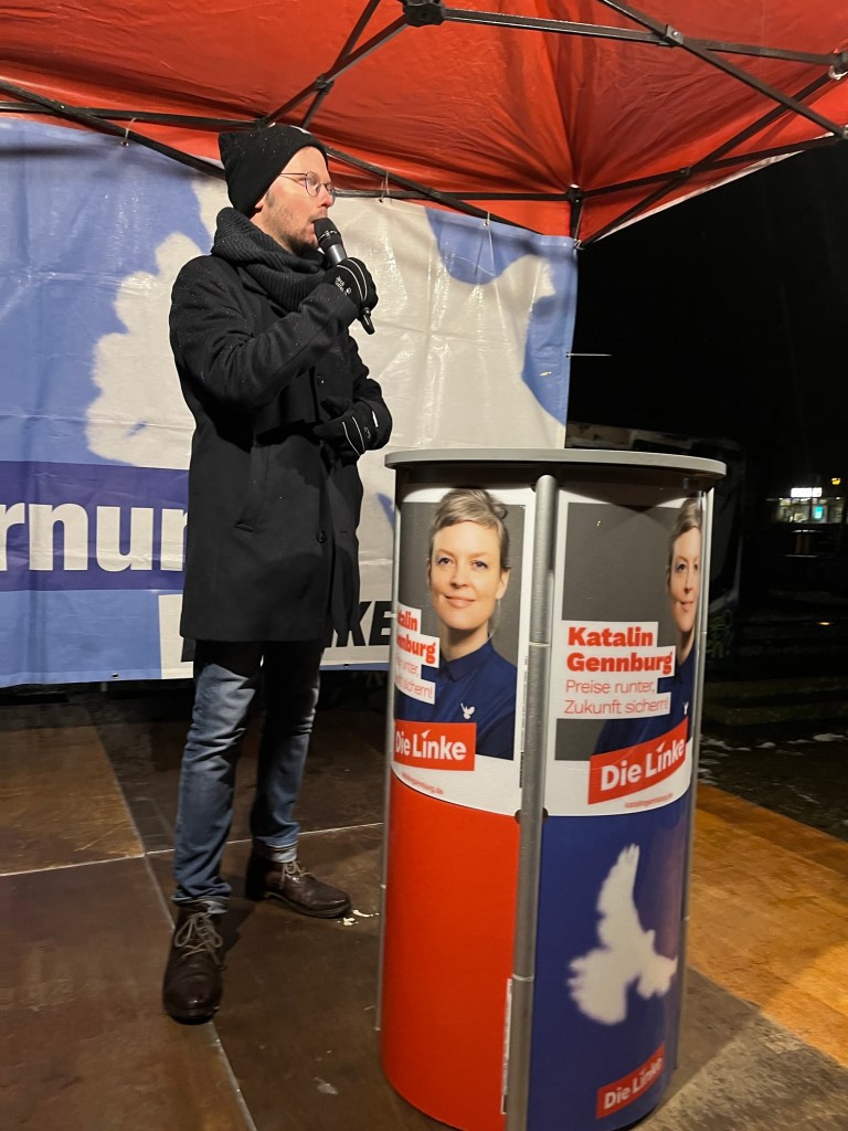 🟥 «Großen Respekt, wie Ihr Euch nicht unterkriegen lasst und kämpft!“ sagte gestern jemand und genau das hören wir jetzt fast täglich. Bei unserer großartig vorbereiteten Friedenskundgebung in Marzahn auf dem Barnimplatz war genau das am häufigsten zu hören. Es war eiskalt, es hat horizontal geschüttet, die Besucherinnen und Besucher waren pitschnass, aber es war sooo eine großartige Stimmung, wie wir sie lange nicht hatten. Hier stimmte einfach alles: die herzliche Begrüßung durch den Vorsitzenden Kristian Ronneburg, der ein weiteres Mal die Staffelstabübergabe von Petra Pau mit Dank und Respekt einmoderierte und dann auch die aktuellen Aktionen im Bezirk beschrieb. Wie auch in den letzten Winterwahlkämpfen ein guter Zusammenhalt, Abstimmung und Präsenz auf Straßen bestens organisiert, das Gemeinsame ist jetzt dran. Neu nun an unserer Seite Katalin Gennburg, die mit ihrer Kandidatur wirklich alles reinwirft, die ihre Aufgabe die eigene Truppe, aber auch die Wählerinnen zu stärken, zu ermutigen, vom ersten Moment