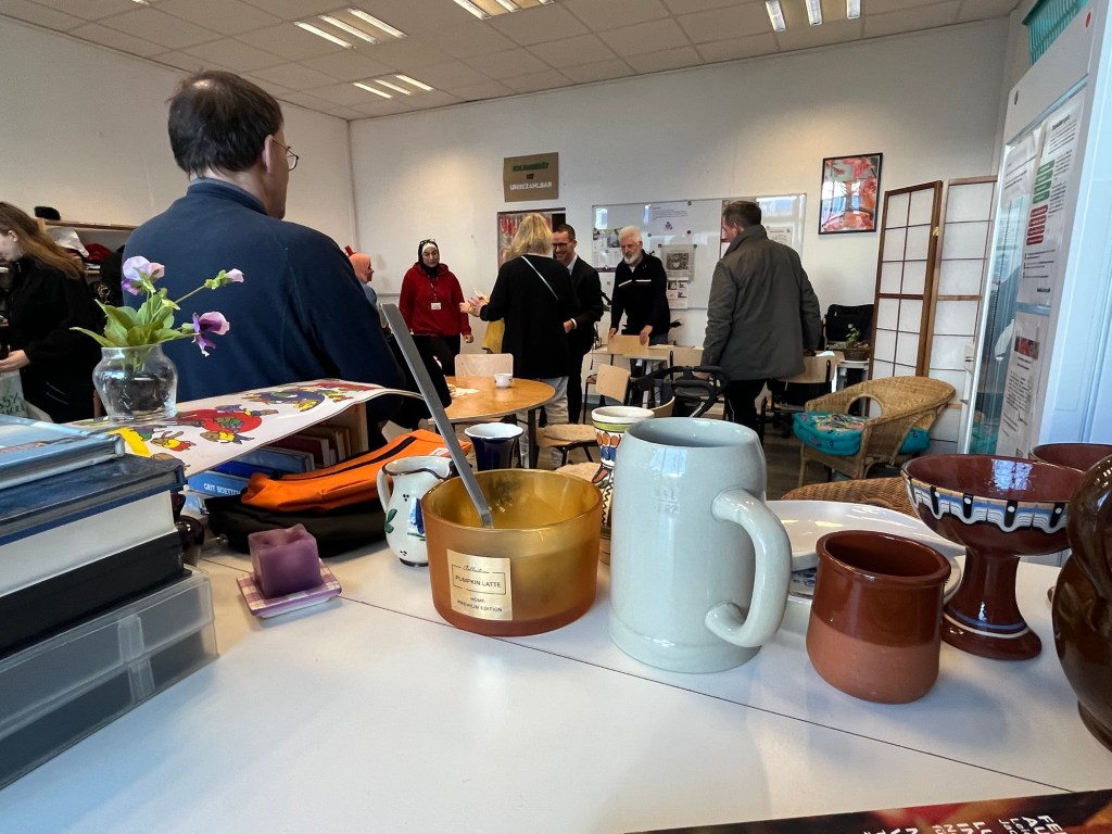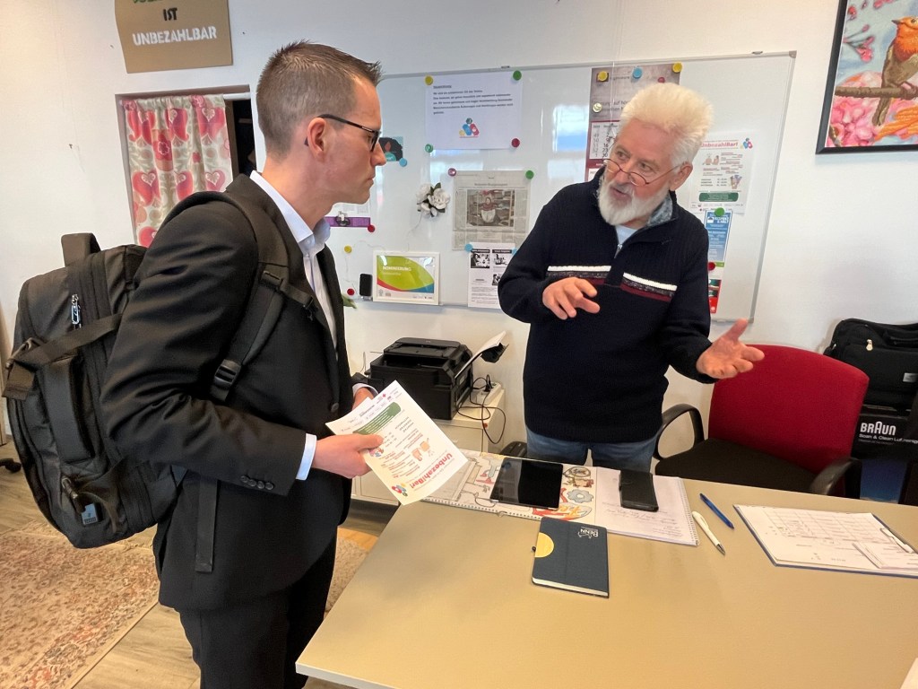 🟨 Heute Mittag waren der neue Amtsleiter des Sozialamtes Herr Filips und ich nach dem Eröffnungsrundgang im Eastgate bei den SOZIALTAGEN gleich nebenan in der #Unbezahlbar vor Ort. Frau Monika Neumann, Biesdorferin und Mitglied der Volkssolidarität, hat uns sofort herzlich begrüßt und zu einem Tee eingeladen, Pfeffi und türkischer Honig.