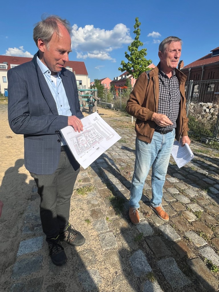 Es war ein Kraftakt, den zentralen Bau zu sichern und so umzubauen, dass nun auch gewerbliche Nutzung möglich ist. Im Stadtteilzentrum selbst war schon ein kleiner Imbiss für die große Gruppe vorbereitet. Herr Filips und ich haben sehr gern auch den Ortschronisten Herrn Gärtner wieder getroffen. Wir halten die Daumen und bedanken uns für die Einladung und Informationen! #gutbiesdorf #biesdorf #blickindenpferdestall