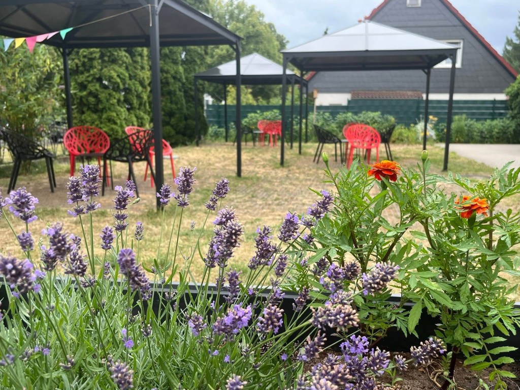 Überwiegend Paare Ü 65, sehr interessiert am Umfeld, mit Neugier und Interesse, was über Stillstand und Veränderungen in der Nachbarschaftbzu hören. Die drei Gastgeberinnen hatten alles gut vorbereitet und auch den Aussenbereich mit den neuen Pavillons einbezogen. Die auch bei Regen gut sind! Das Team nutzte die Chance, die Arbeit vor Ort, die Angebote und speziell auch Mitmachmöglichkeiten für alt und jung vorzustellen, die das vom Sozialamt finanzierte Stadtteilzentrum bereit hält. Im Fokus der interessierten Anwohnerschaft standen vorab natürlich viele Fragen zum Verkehr, zu fehlenden barrierefreien Wegen, zur Entwicklung am und um den Bahnhof, warum es neben den Fahnen null Baubeginn gibt, warum es mit der der Chemnitzer Straße hapert, warum der Discounter an der B 1 neben Schilkin ruinös dahin vegetiert und nicht endlich umgebaut wird und wann der neue REWE an der B 1 öffnen wird. Im November 25.
