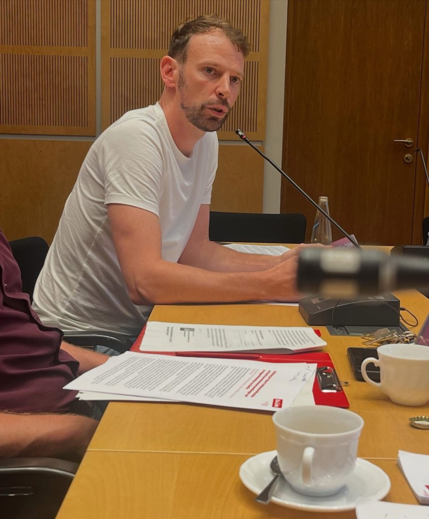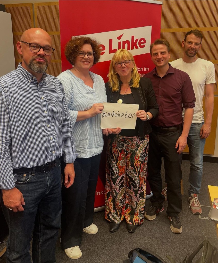 🟥 @dielinkeberlin zusammen für die Bezirke: Morgen will der Senat über seinen Entwurf für den Doppelhaushalt 2026/27 entscheiden. In den Berliner Bezirken läuft dieser Prozess bereits seit Wochen auf der Grundlage der von der Senatsfinanzverwaltung vorgenommenen Globalsummenzuweisung. Dabei wird deutlich: Wenn der Senat nicht noch die finanzielle Grundlage der Bezirke verbessert, wird das zu Kürzungen bei den Leistungen der Bezirke führen. Die werden einschneidende Folgen für Jugendliche und arme Menschen in der Stadt haben, aber auch für viele andere. Gemeinsam mit @tobias_schulze , @maximilianschirmer , @camilla_schuler, @phil_dehne heute gemeinsam im Abgeordnetenhaus. Klare Aussage: unsere Sozialen Träger stehen nicht zur Disposition, die Stadt braucht Lösungen statt Streichung, soziale Arbeit muss tarifgerecht bezahlt werden. Der letzte Appell an den Senat, bevor morgen beschlossen wird!
