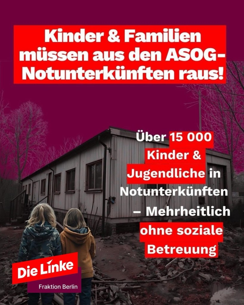 🟥 Dank geht an die Linksfraktion Berlin, hier Katina Schubert und Franziska Brychcy, die das Thema Unterbringung von Kindern und Familien in Wohnungslosenheimen, sogenannten ASOG Einrichtungen, auf die Tagesordnung gesetzt hat!