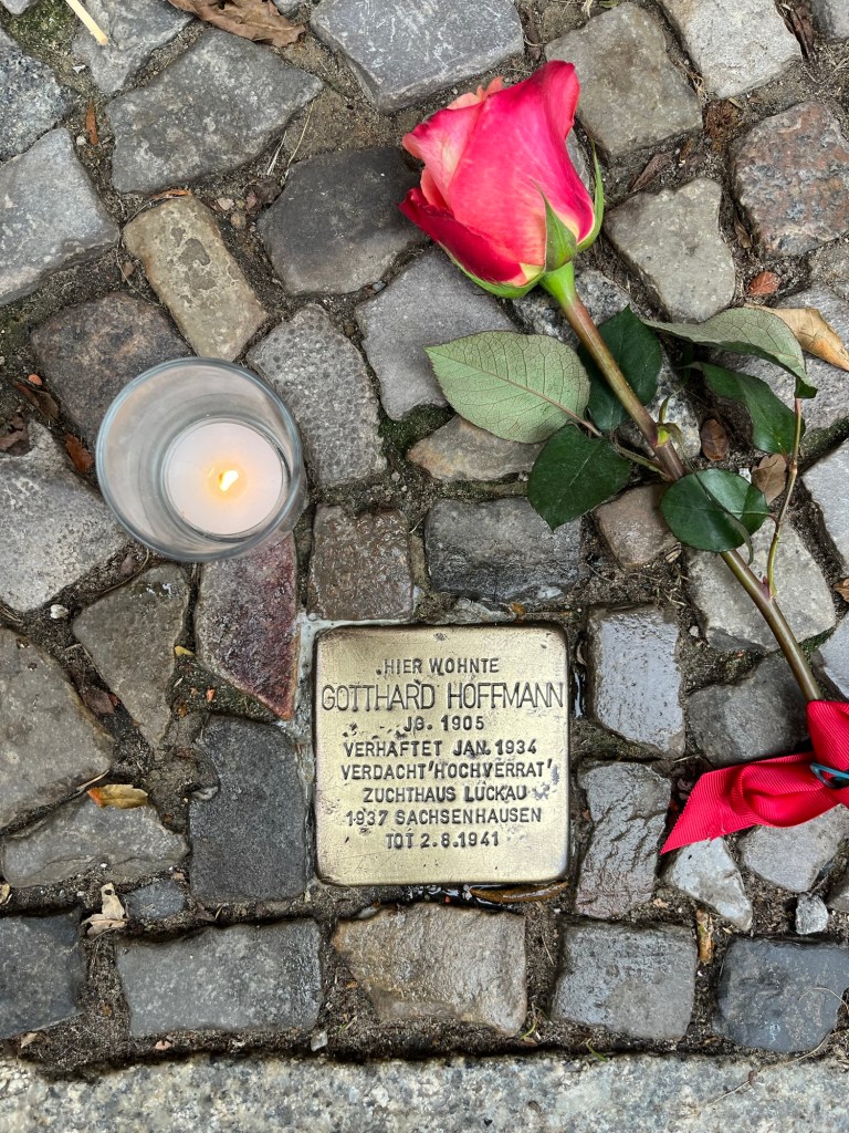 9. November. Heute mal allein unterwegs. Stolperstein für den kommunistischen Stadtverordneten Gotthard Hoffmann geputzt. Ehrlich gesagt war das noch nie an irgendeinem Ort wirklich nötig.