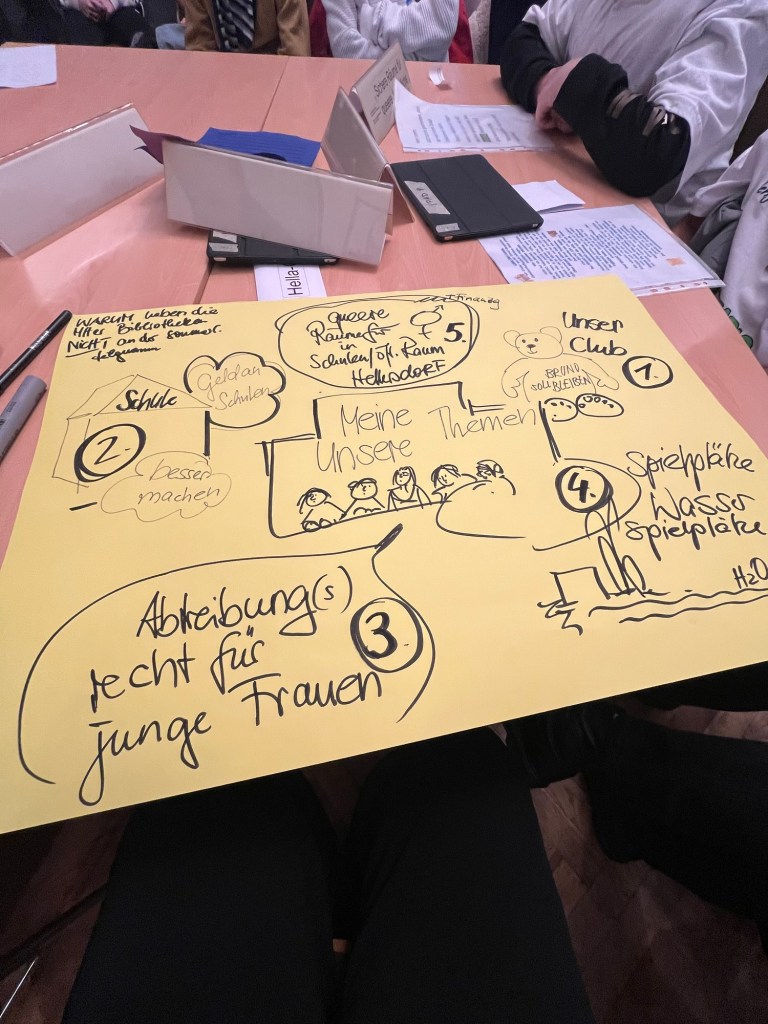 Wir sind mit Schülerinnen, Studierenden der ASH, mit Pädagogen und Menschen aus dem Kinder- und Jugendparlament ins Gespräch gekommen, und natürlich hat sich unser Tisch gleich passend #Bruno genannt. 🐻