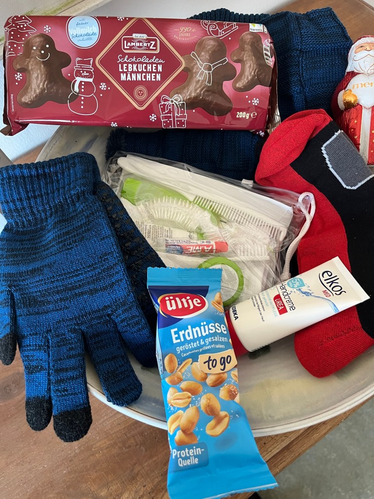 Heute sind wir hier bei uns im Sozialamt Marzahn-Hellersdorf und verteilen persönlich einen Weihnachtsgeschenkebeutel an jene Menschen, die heute als Wohnungslose im Front Office vorsprechen. Natürlich kann niemand allen helfen und es ist auch nie genug. Aber unter dem bekannten Motto „Leuchtender Advent“ sind wir auch dieses Jahr dabei, um im persönlichen Gespräch zu unterstützen und zu beraten. In den Adventsbeutel haben wir schon mit fleißigen Kolleginnen und Kollegen Sachen gepackt, eine warme Mütte, Handschuhe, warme gute Socken.