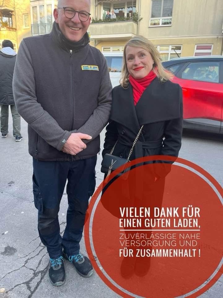 🟥 „Herzlichen Dank“ – mit einer berührenden Aktion direkt vor der Tür des Ladens „nah & gut“, dem kleinen Edeka Mädewalder Weg, haben sich die Nachbarn und Mistreiter der Bürgerrunde Kaulsdorf gemeinsam ausgetauscht und in Erinnerungen geschwelgt. Vom ersten Kaugummi bis zum speziellen Joghurt, von dem Tip, wenn es gerade etwas Besonderes gibt bis zu den hilfreichen Gesten für jene Senioren, die den kurzen Weg für ein Stück Butter geschätzt haben. Die großen, neu sanierten Supermärkte an der B 1 sind vielen zu groß, zu unpersönlich und zu voll. Die Bedeutung kleiner Läden ist allen klar, aber auch, dass die wirtschaftliche Situation schwieriger geworden ist. Es war eine tolle Aktion, wir haben Schokolade gegessen, aktuelle Infos zum Bahnhofsgelünde ausgetauscht, gehört wie es mit dem Laden gegenüber weitergeht und warum es gut ist, aktive Mitstreiter zu haben, die sowas auf die Beine stellen wie Antonia Liebnitz.