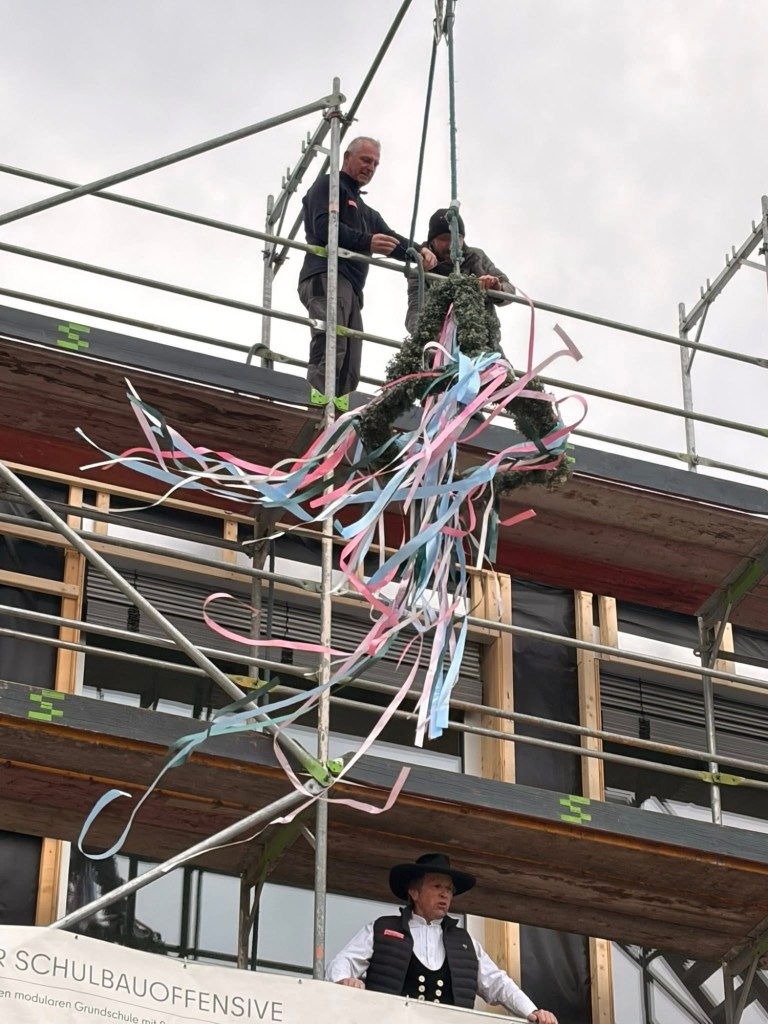 Es ist ein gutes Beisammen aller, die von Bauleuten, Architekten, Handwerkern, unseren Ämtern, der BVV, aus Gremien von Land und Bezirk, unserem Bezirksamt, Mitarbeiterinnen und Unterstützern dabei sind. Anfang 27 soll es fertig sein, auch Nachbarn waren heute dabei und freuen sich schon auf eine Schaar von wissbegierigen Kids, die hier Stimmung reinbringen werden. Viel Erfolg der Schulleiterin und ihrem Pädagogischen Team und weiter erstmal noch unfallfreies Bauen. Im übrigen: bester Richtspruch seit langem! #Biesdorf #schulbau #marzahn