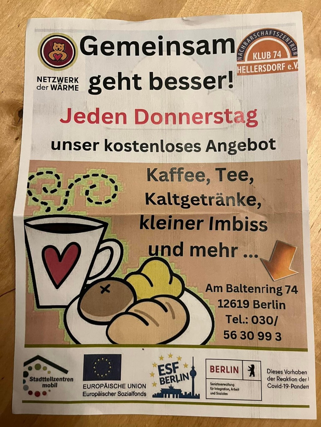 🟠🔵Start in den Tag und in die Woche bei der Sommertour zu den Orten der Stadteilarbeit und Nachbarschaftsprojekte: heute morgen beim Verein Klub 74 Hellersdorf e.V.Der Verein betreibt neben dem Kompass Stadtteilzentrum Hellersdorf Süd auch den NACHBARSCHAFTSTREFF am Baltenring 74.… more ›