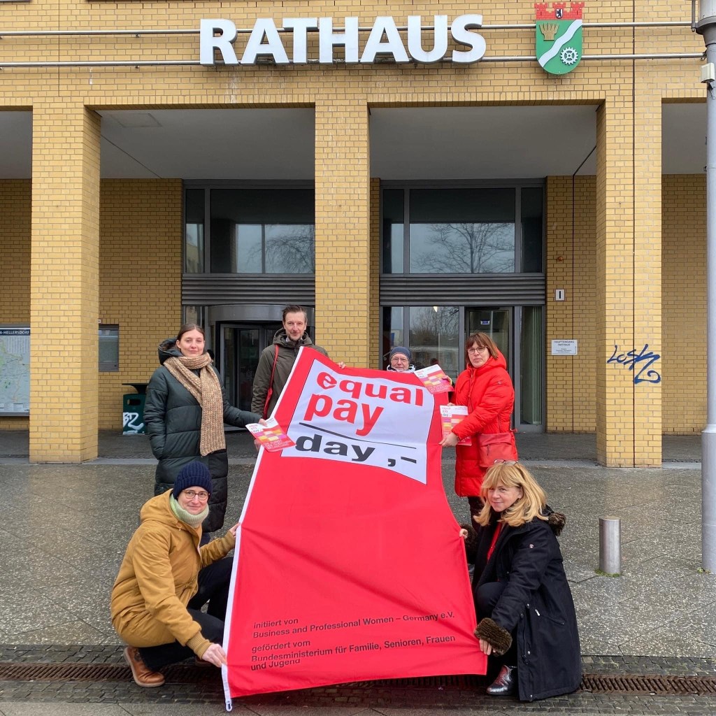 🔴 Erledigt: die equal pay dayFahne hängt vor dem Rathaus Hellersdorf.Heute war der #rotertaschentag und Anja Molnar und Claudi Dressel hatten natürlich ihre roten Taschen dabei!Der #equalpayday ist die ständige Erinnerung daran, dass es weiterhin ein Lohngap gibt, was der… more ›